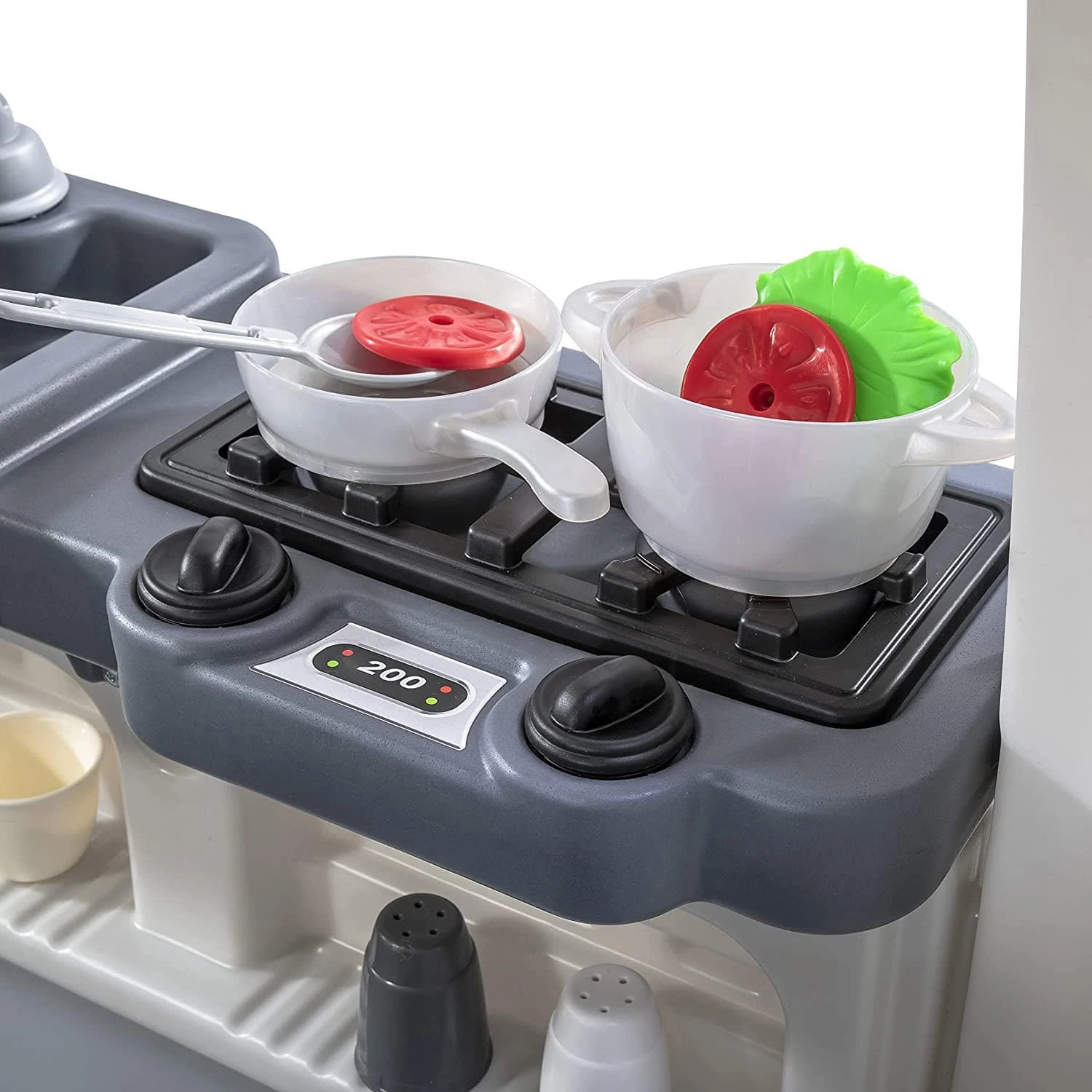- IN THE BOX: Camper base with grill, kitchenette, and accessory set including play food and utensils.