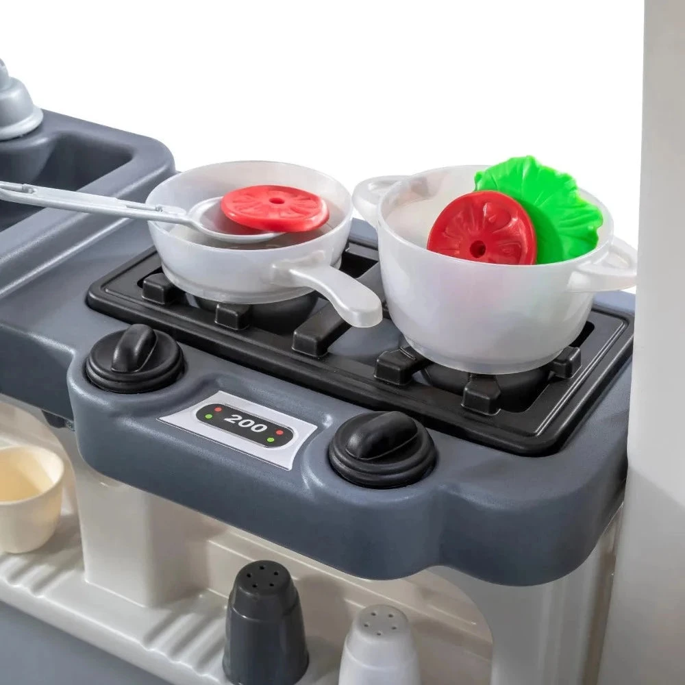 - Guests can announce their arrival with the working doorbell and take a seat at the molded-in kitchen chair while they wait for the party to begin