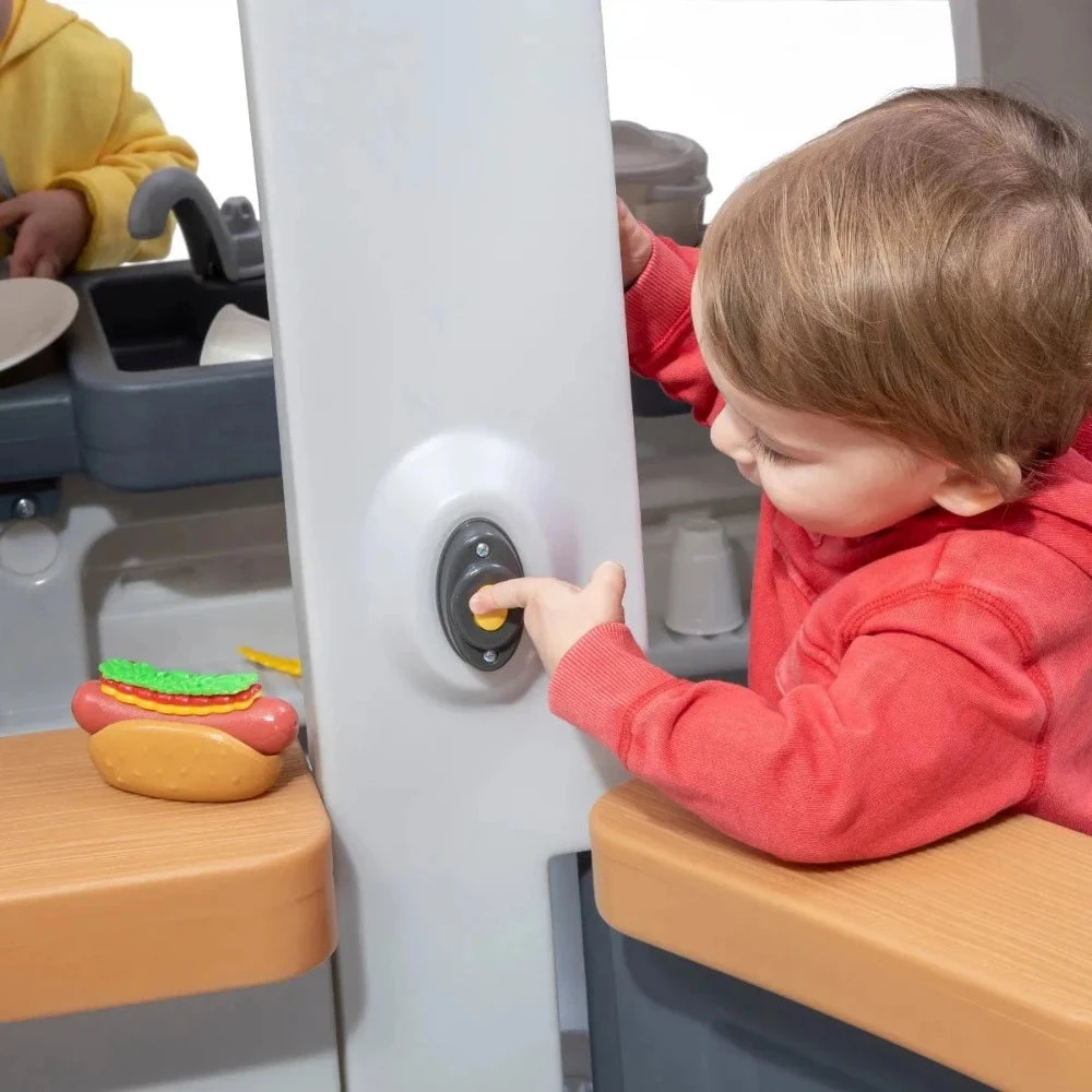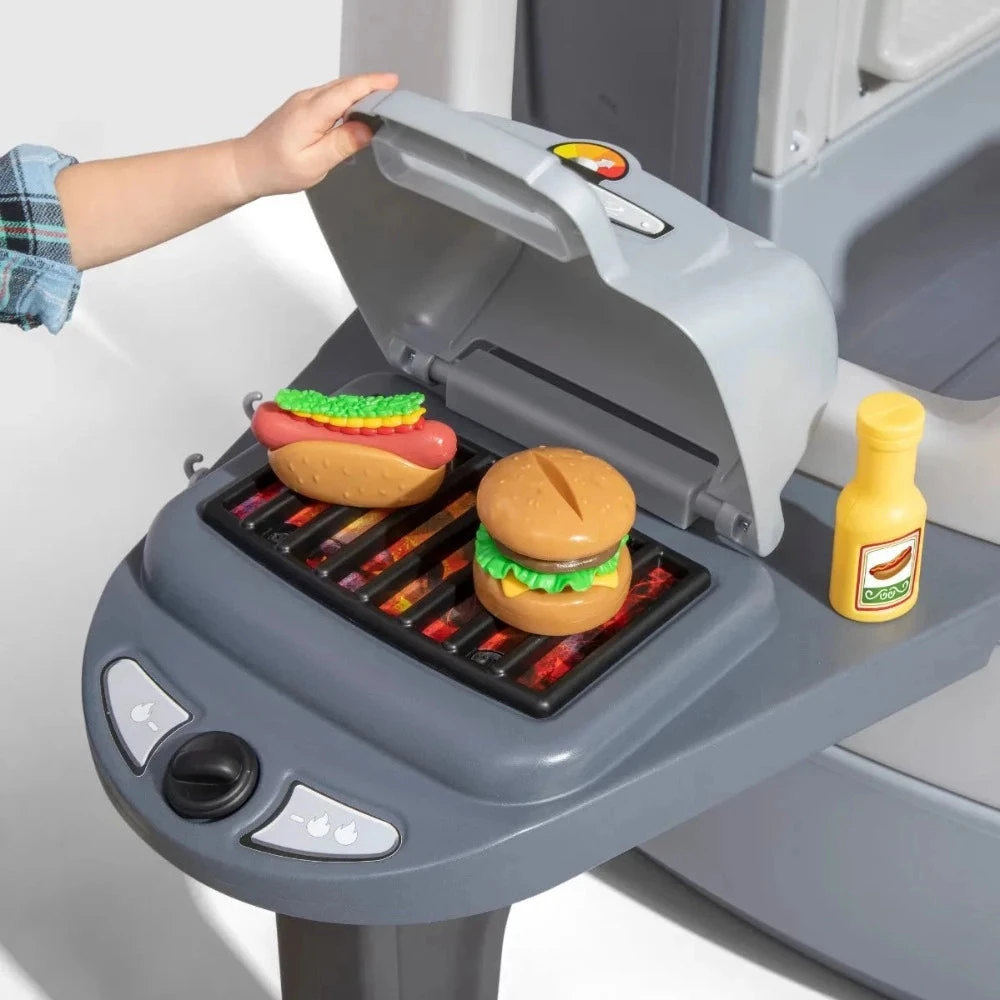 - In the box: Camper base with grill space, kitchenette with large storage bin, and accessory set including play food and utensils.