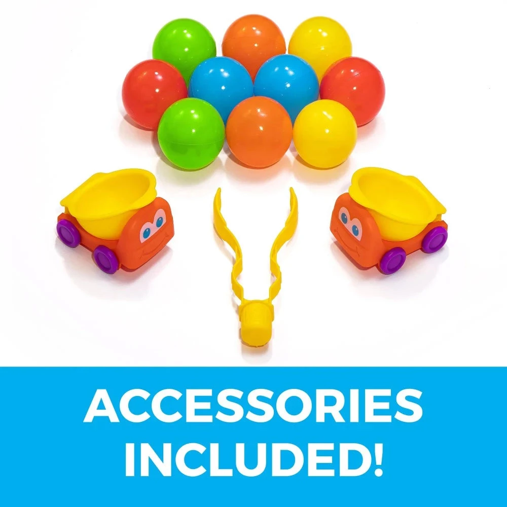 - Use the ball-picker tongs to carefully set play balls on the Ball Buddies trucks, or onto the track and watch them roll!