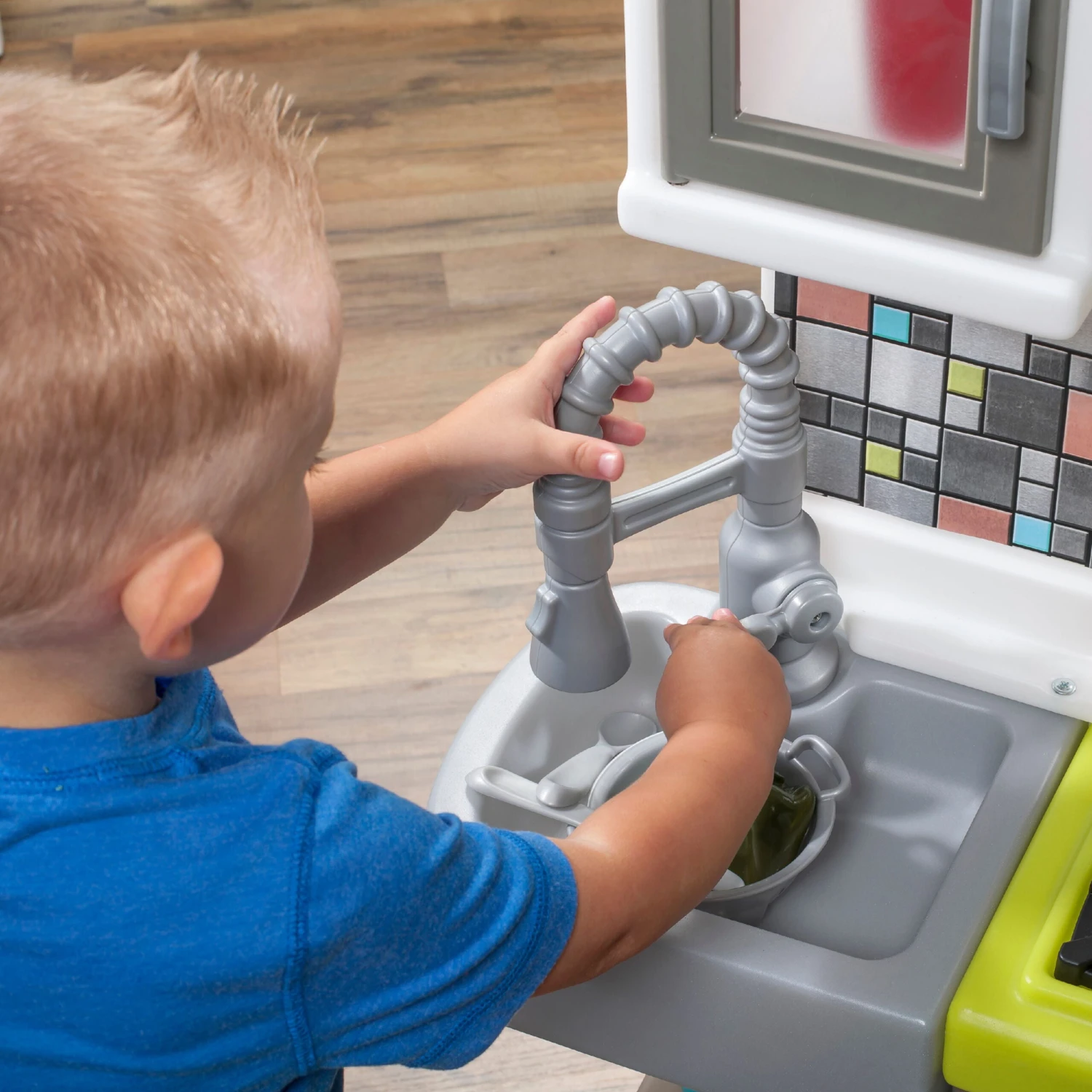 - Realistic brick and subway tile style enhances the creative role play for junior chefs