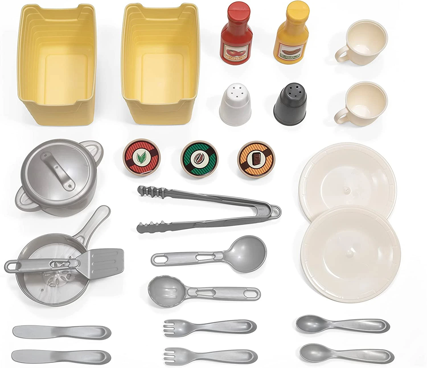 Store all of your kids play food and kitchen accessories in the included storage bins. Still need more room? Store overflow accessories in the microwave, oven, or refrigerator.