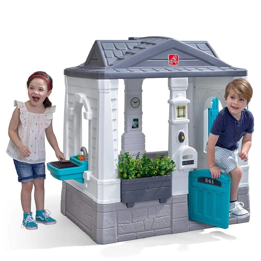 - INTERACTIVE FEATURES: From working shutters to an electronic doorbell to a pass-through mailbox, this kids’ playhouse has many realistic features to enhance pretend play. Kids can take turns cooking, washing dishes, sitting at the molded-in table, making phone calls & watering flowers..