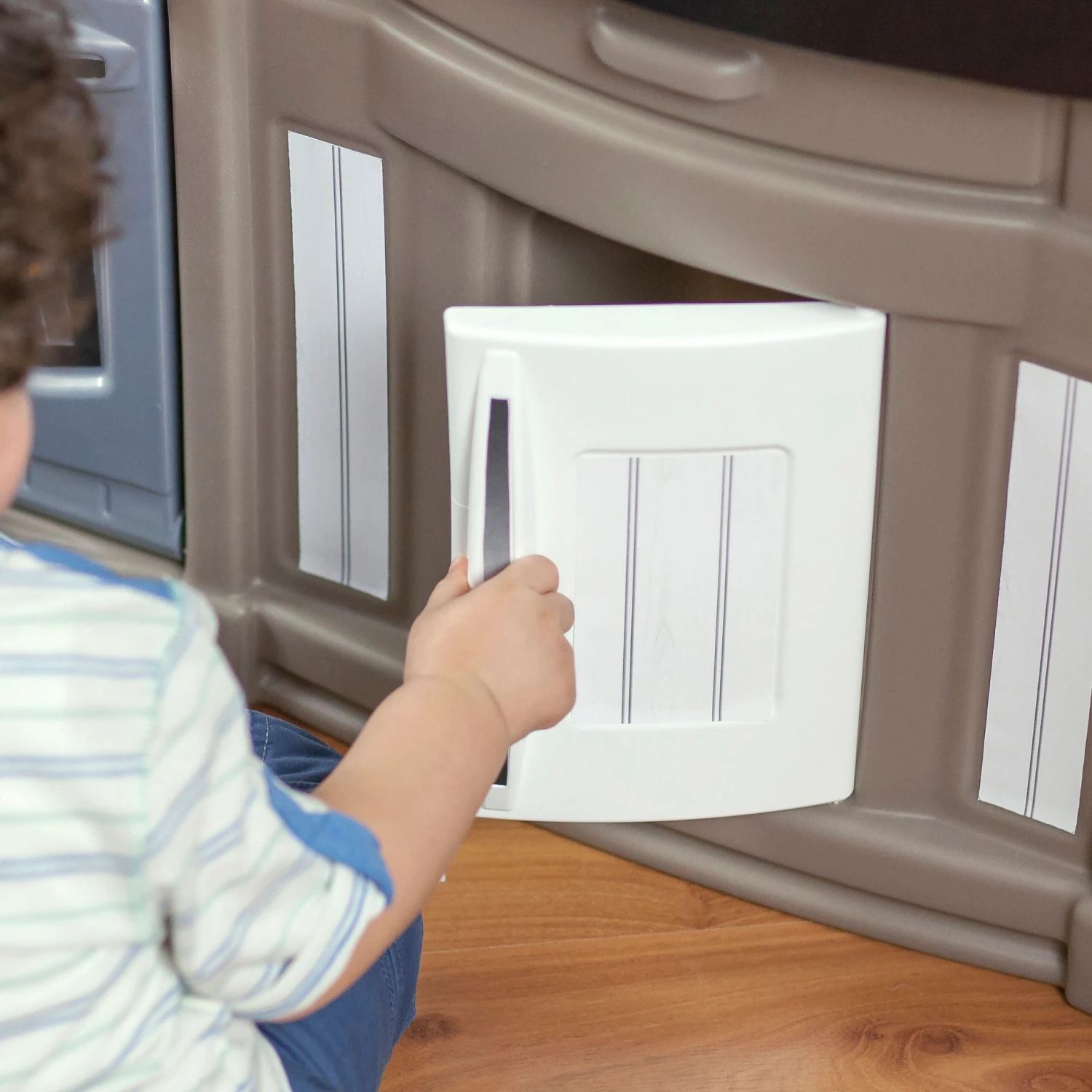 - Clickable oven and stovetop knobs add to the pretend play.