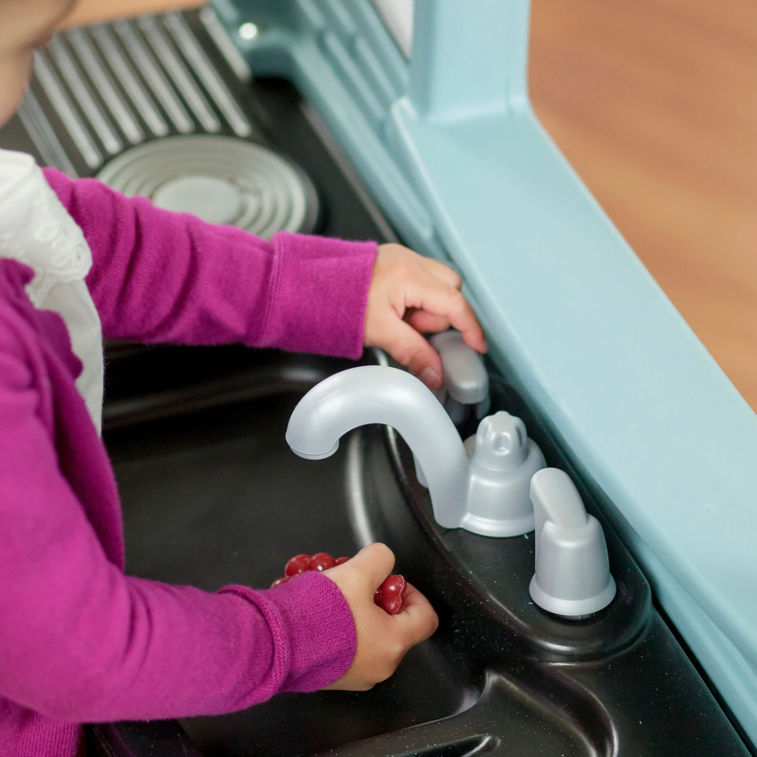 - In the box: Play kitchen, 25-piece accessory set.