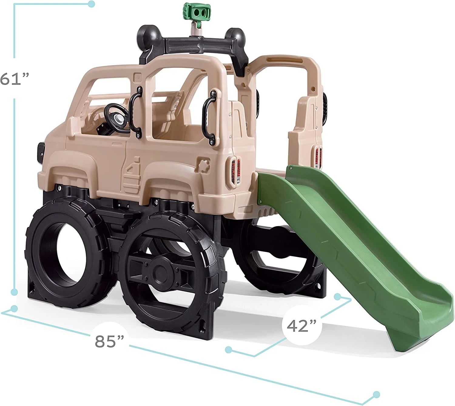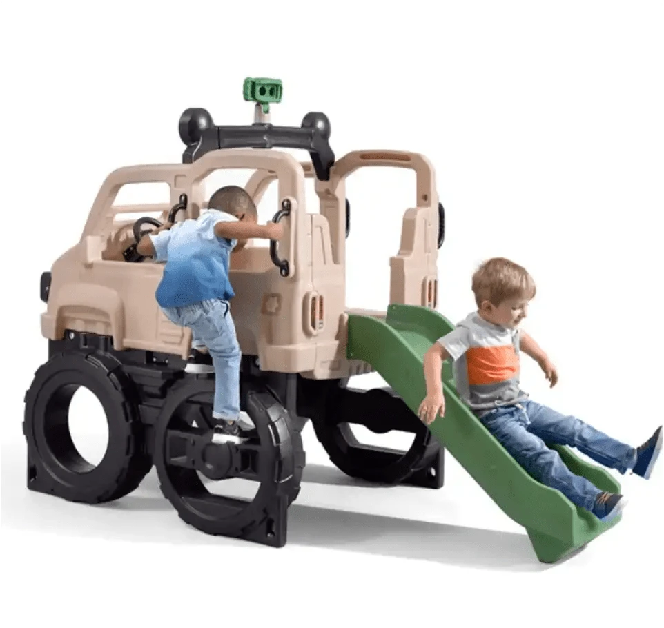 - Bring serious off-roading vibes home to your backyard play space with this large, stationary safari truck climber!